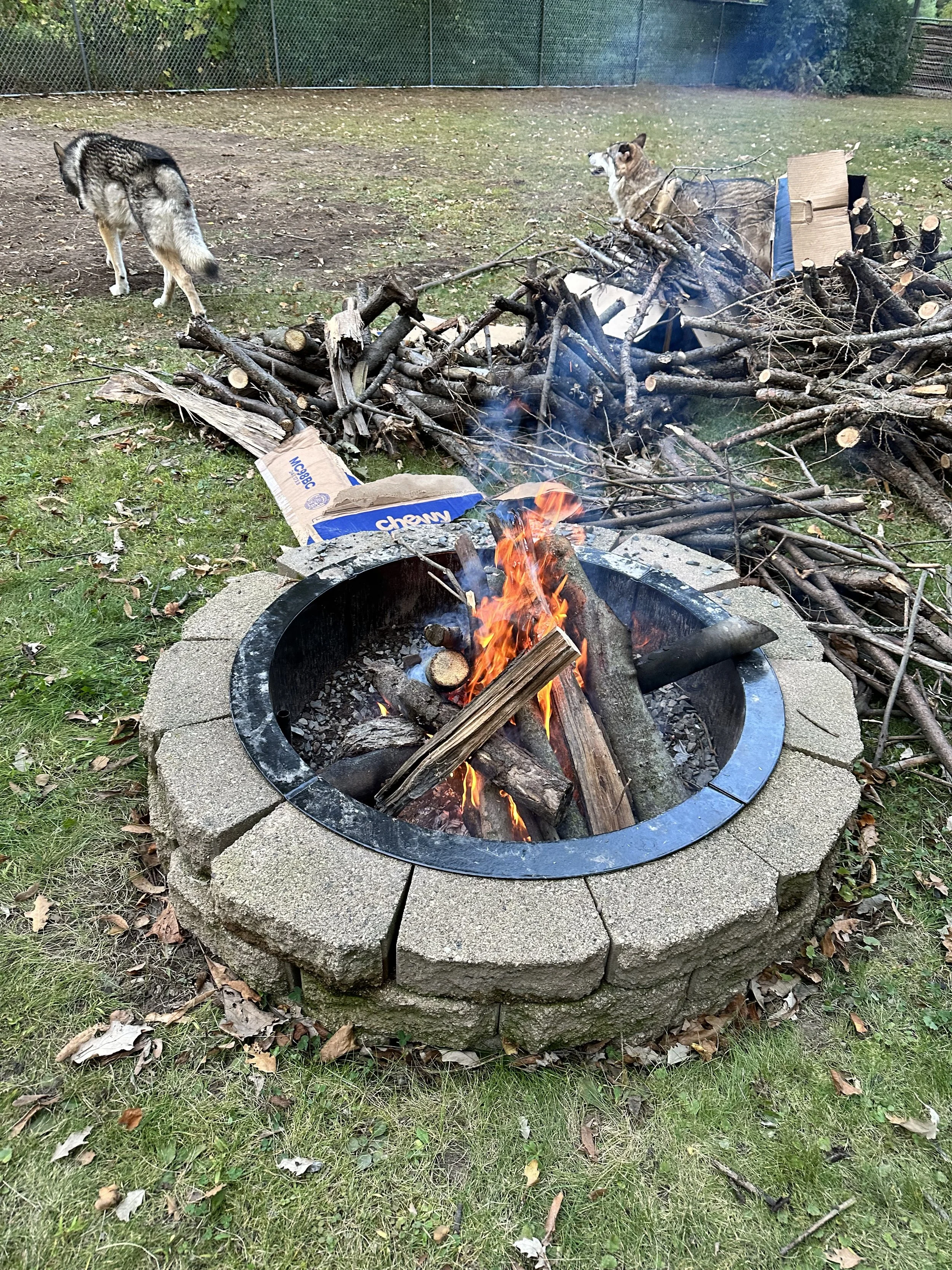 During the summer we have a fire pit where we burn the brush and other paper products that we don’t need. Win Win Win.